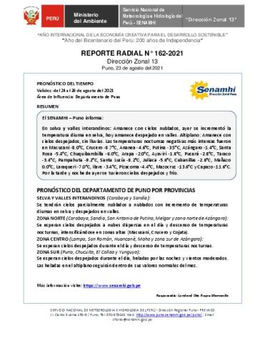 SENAMHI-DZ13 Puno: Reporte radial del 23 de agosto del 2021