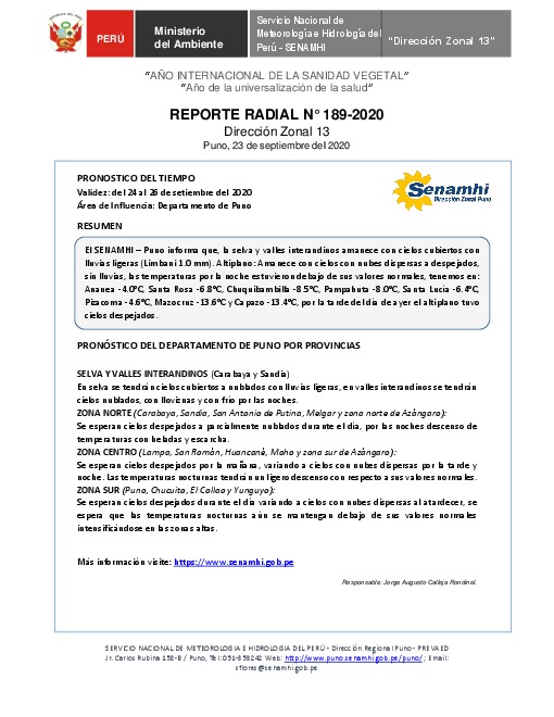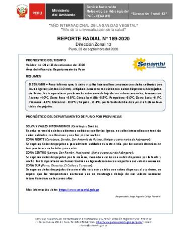 SENAMHI-DZ13 Puno: Reporte radial del 23 de setiembre del 2020