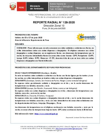 SENAMHI-DZ13 Puno: Reporte radial de 24 de junio del 2020