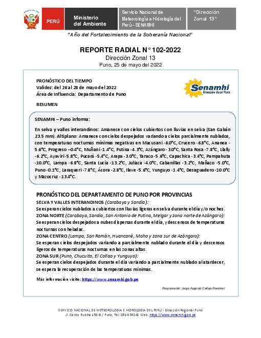 SENAMHI-DZ13 Puno: Reporte radial del 25 de mayo del 2022