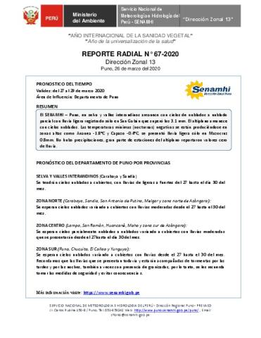 SENAMHI-DZ13 Puno: Reporte radial de 26 de marzo del 2020
