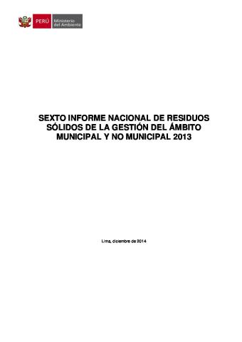 Sexto informe nacional de residuos sólidos de la gestión del ámbito municipal y no municipal 2013