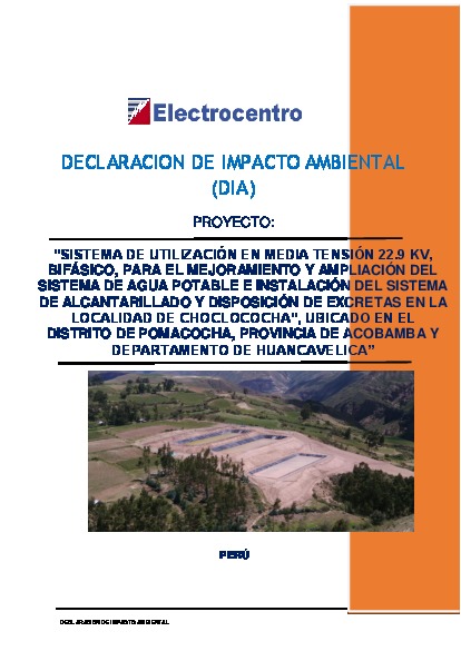 "Sistema de Utilización en Media Tensión 22.9 KV, Bifásico, el Mejoramiento y ampliación del Sistema de Agua Potable e Instalación del Sistema de Alcantarillado y Disposición de excretas en la localidad de Choclococha”