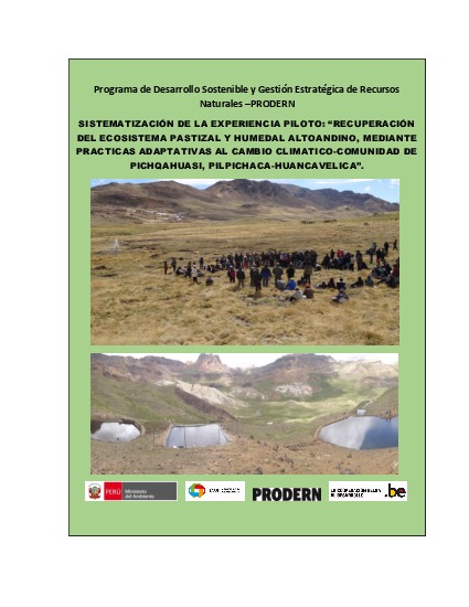 Sistematización de la experiencia piloto: “Recuperación del ecosistema pastizal y humedal altoandino, mediante prácticas adaptativas al cambio climático-comunidad de Pichqahuasi, Pilpichaca-Huancavelica”.