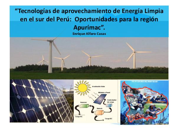 Tecnologías de aprovechamiento de Energía Limpia en el sur del Perú:Oportunidades para la región Apurímac