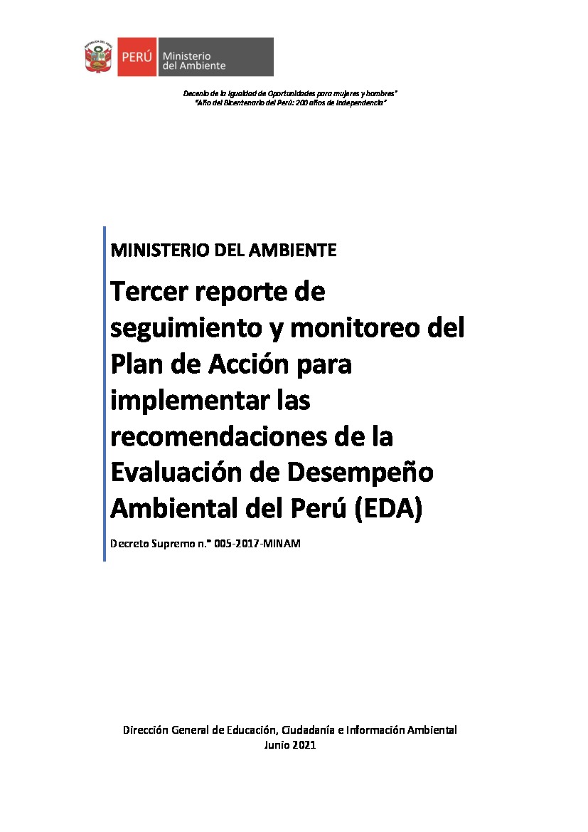 Tercer reporte de seguimiento y monitoreo del Plan de Acción para implementar las recomendaciones de la Evaluación de Desempeño Ambiental del Perú (EDA)