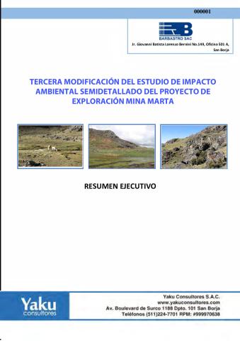 TERCERA MODIFICACIÓN DEL ESTUDIO DE IMPACTO AMBIENTAL SEMIDETALLADO DEL PROYECTO DE EXPLORACIÓN MINA MARTA