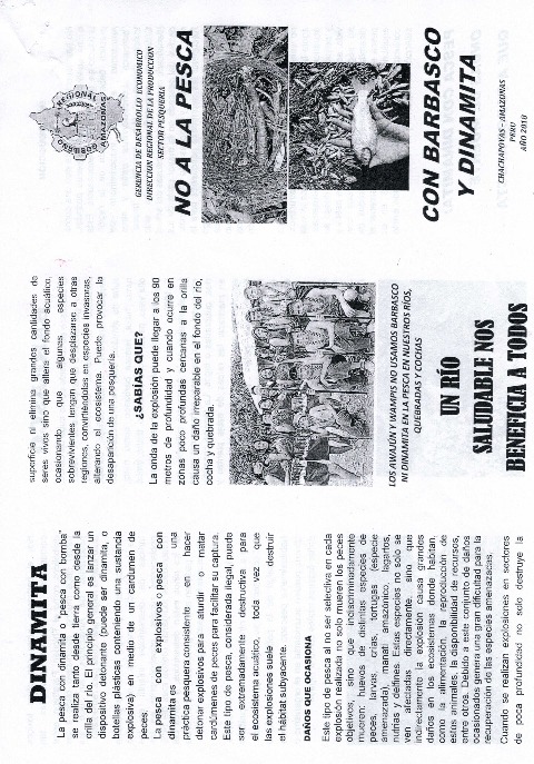 Triptico No a la casa con Barbasco y Dinamita realizado por la Direccion Regional de la Produccion Amazonas