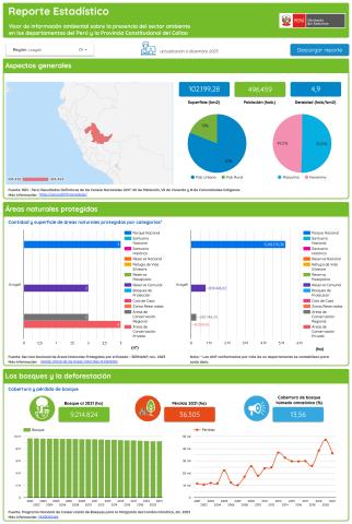 Los reportes estadísticos ambientales departamentales (Dossiers) son documentos de síntesis que contienen datos generales, así como la información estadística más importante sobre la presencia del sector ambiente en los departamentos del Perú, con la finalidad de servir como una herramienta que brinda información de calidad, oportuna y clara sobre el estado del ambiente y los recursos naturales con la finalidad que puedan ser utilizados en los procesos de gestión ambiental y alertar sobre posibles problemas ambientales.