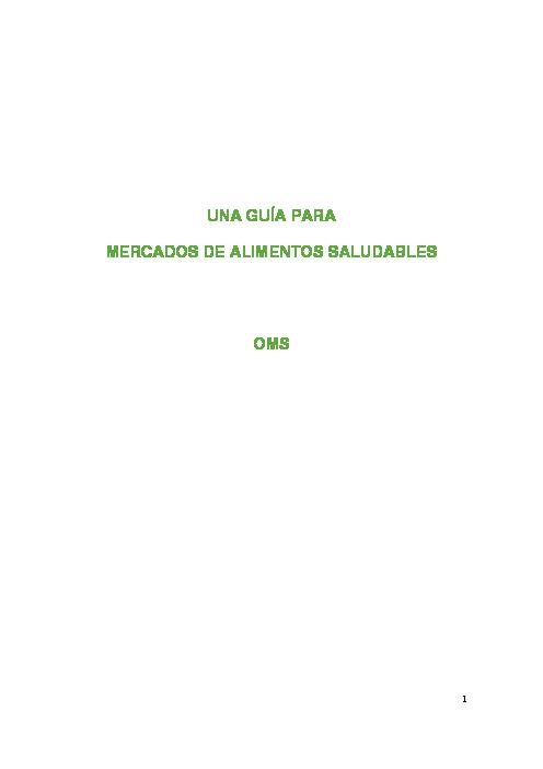 Esta guía pretende constituirse en una orientación básica y un punto de referencia para el desarrollo de proyectos piloto de Mercados de Alimentos Saludables. A pesar de que las líneas principales de esta guía son aplicables a todos los mercados, algunos mercados requieren flexibilidad para alcanzar sus objetivos. Los proyectos piloto de Mercados de Alimentos Saludables exitosos son los que atraen a la comunidad para que todos sus miembros trabajen juntos con una visión compartida sobre el mercado seguro y saludable. Sin considerar que las mejoras específicas puedan realizarse en un mes, un año o diez años, el trabajo hacia la visión compartida del Mercado de Alimentos Saludable significará, finalmente, una situación mejor de salud y nutrición para todos los miembros de la comunidad. Esta guía debe considerarse como una herramienta que ayuda a promover la visión del Mercado de Alimentos Saludables entre las personas que entienden realmente que "somos lo que comemos".