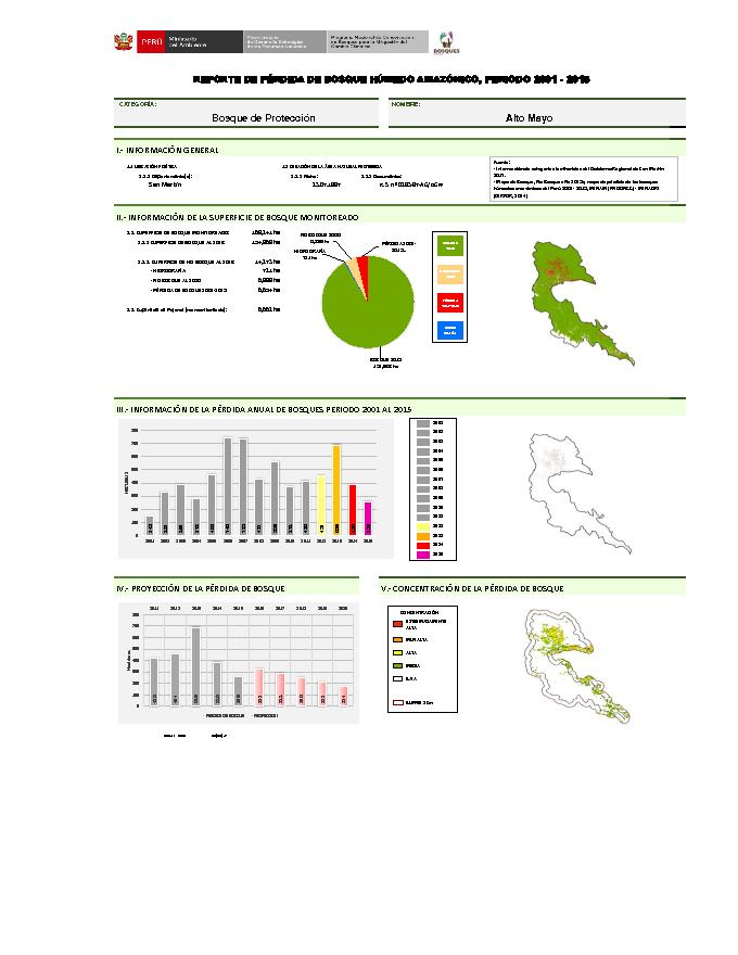 ALTO MAYO. REPORTE DE PÉRDIDA DE BOSQUE HÚMEDO AMAZÓNICO, PERIODO 2001-2015
