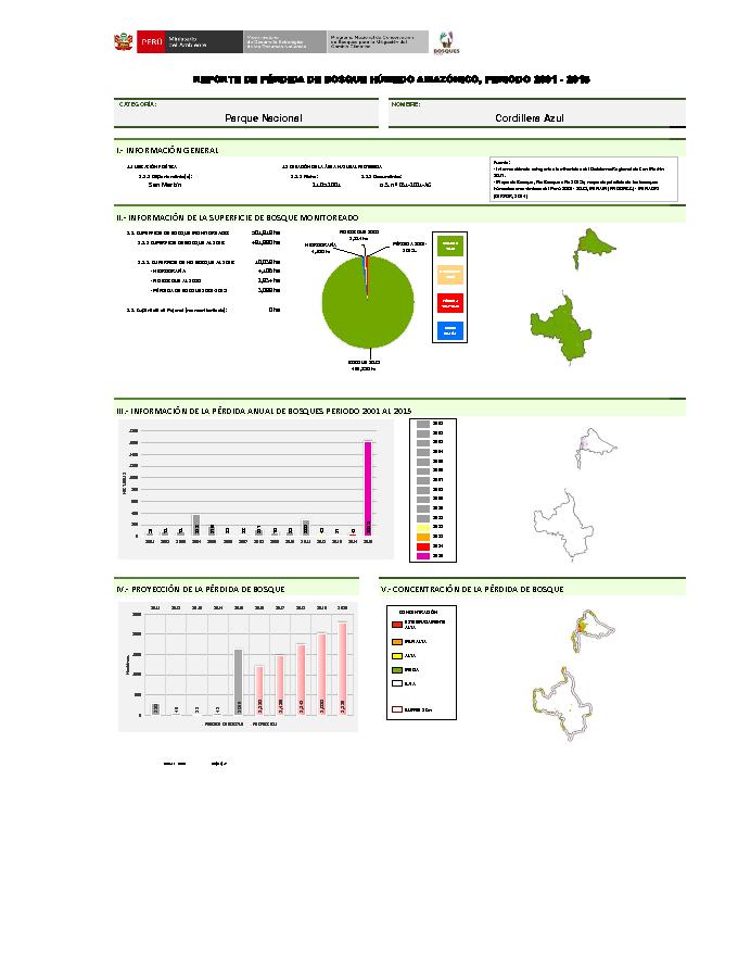 CORDILLERA AZUL. REPORTE DE PÉRDIDA DE BOSQUE HÚMEDO AMAZÓNICO, PERIODO 2001-2015