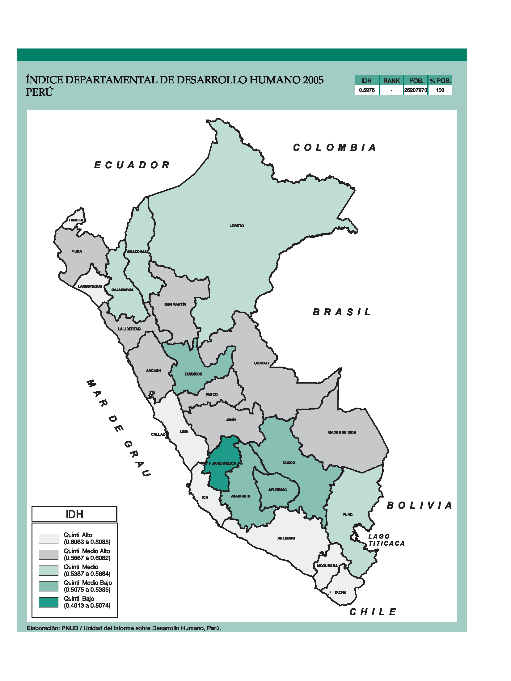 Índice de Desarrollo Humano Departamental, Perú 2005.