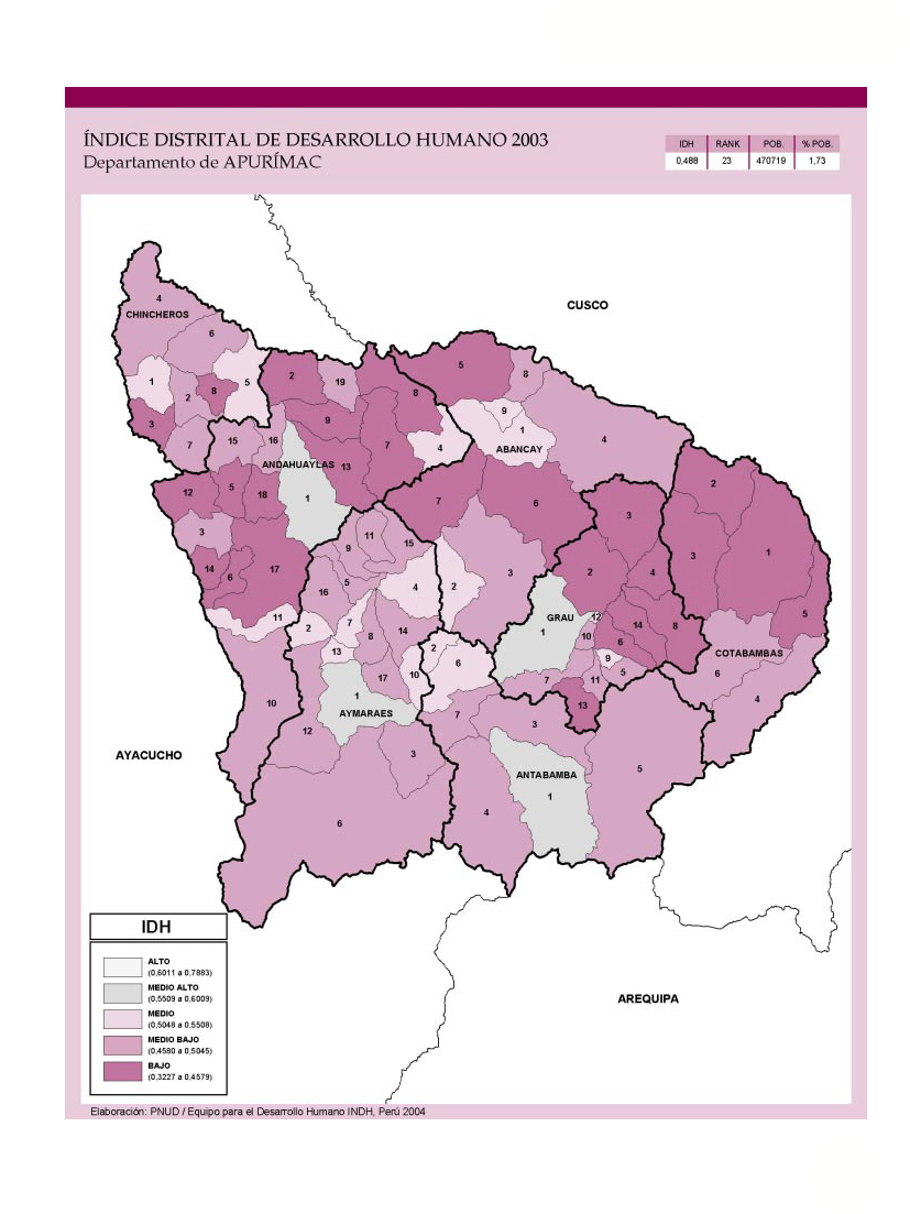 Índice de Desarrollo Humano Distrital 2003 - Departamento de Apurímac.