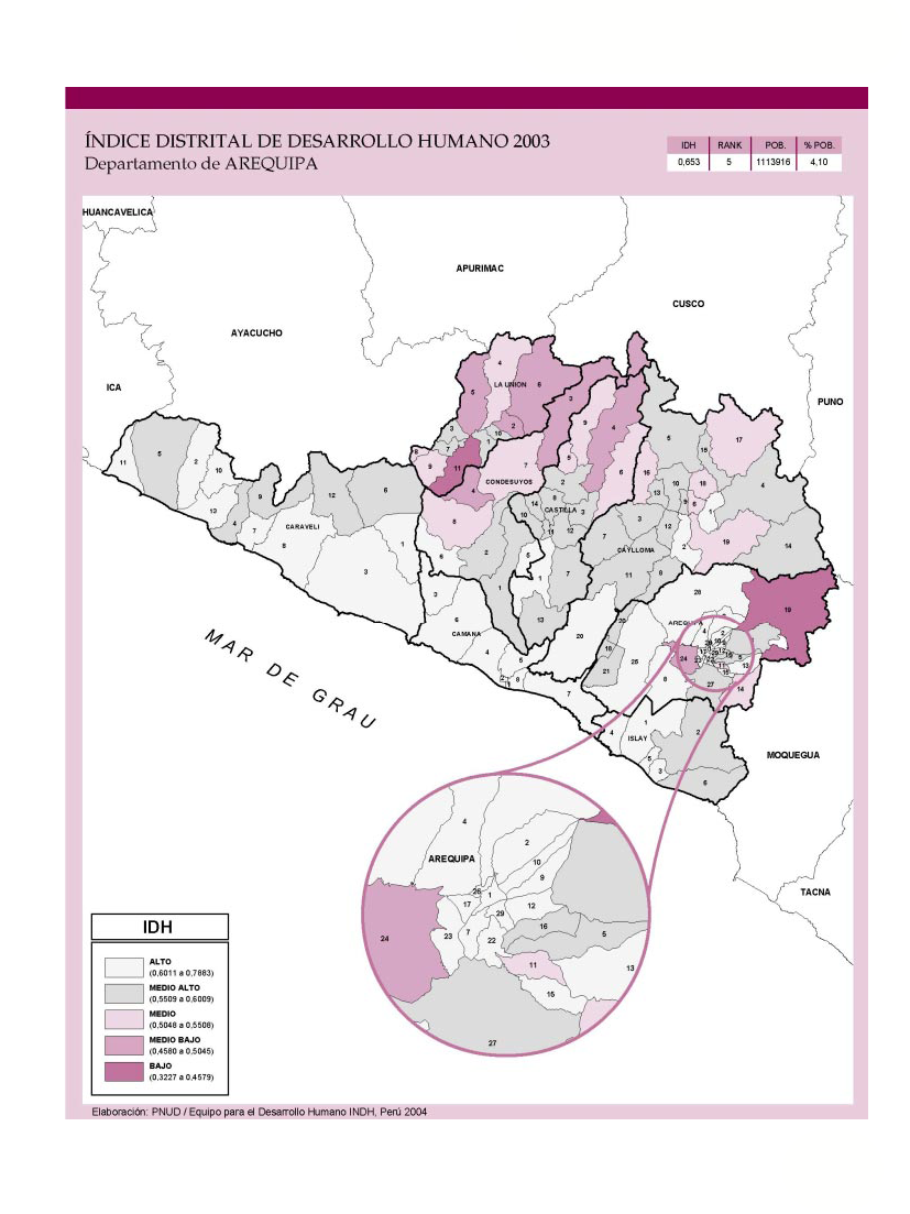Índice de Desarrollo Humano Distrital 2003 - Departamento de Arequipa.