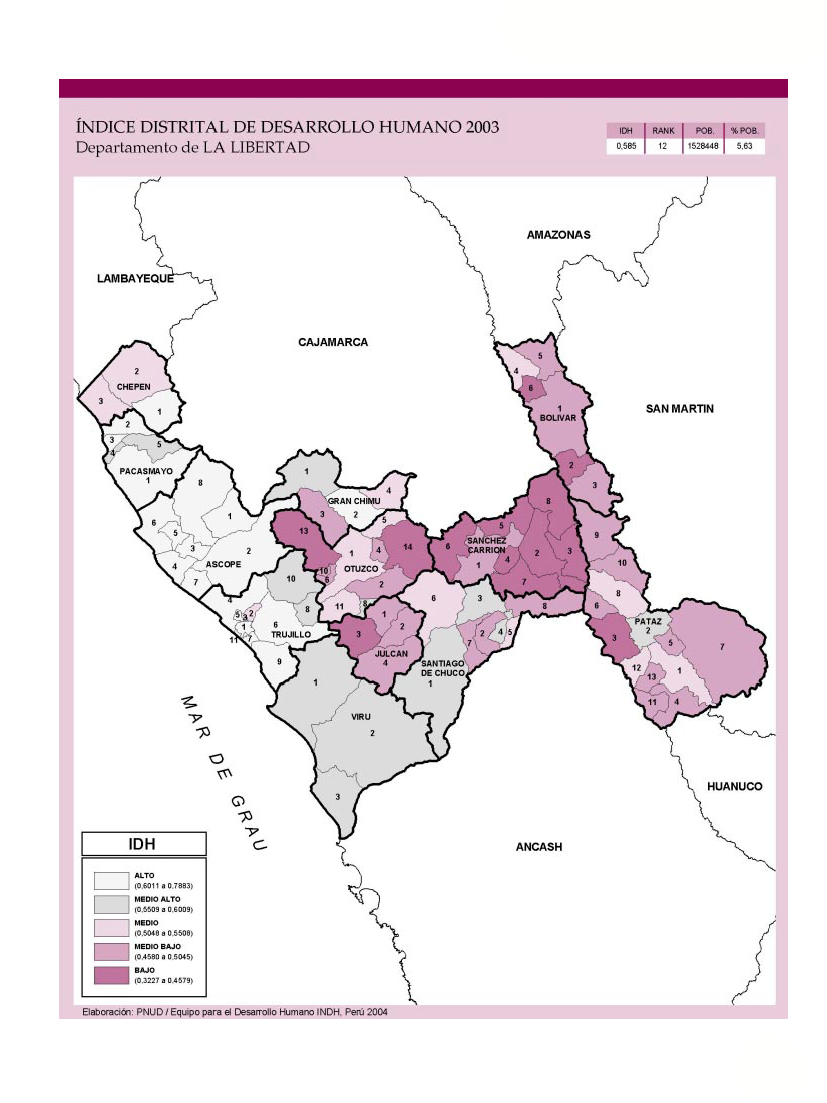 Índice de Desarrollo Humano Distrital 2003 - Departamento de La Libertad.