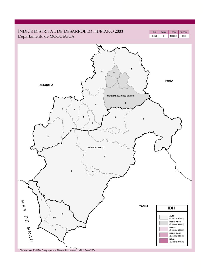 Índice de Desarrollo Humano Distrital 2003 - Departamento de Moquegua.