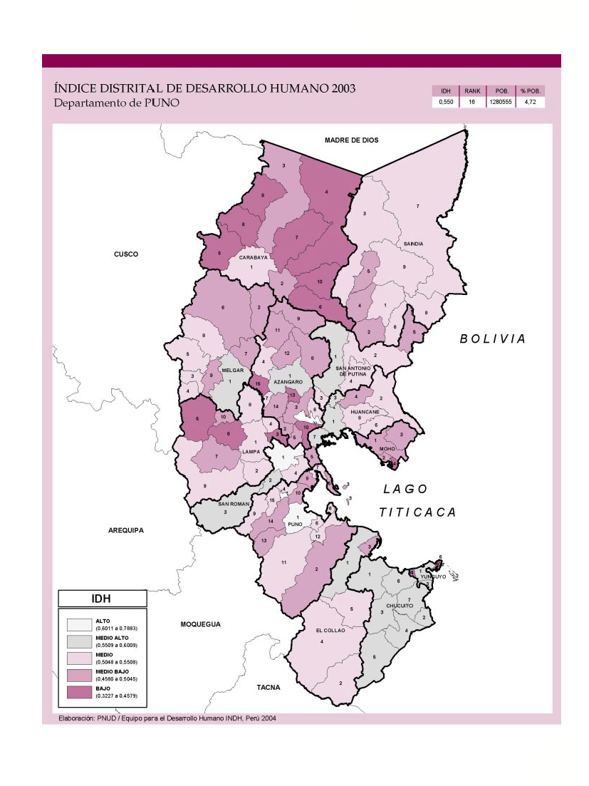 Índice de Desarrollo Humano Distrital 2003 - Departamento de Puno.
