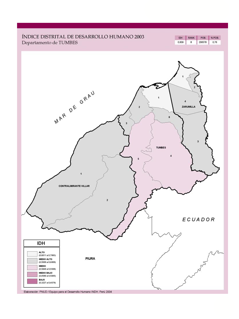 Índice de Desarrollo Humano Distrital 2003 - Departamento de Tumbes.