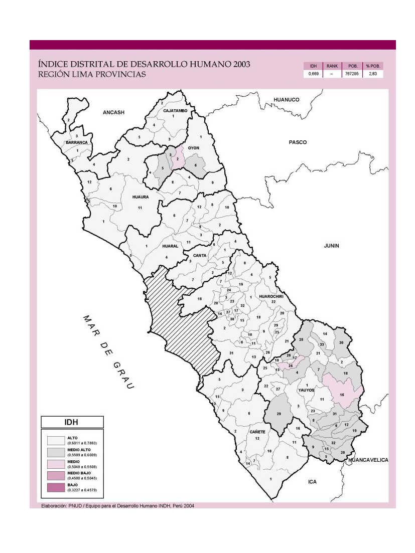 Índice de Desarrollo Humano Distrital 2003 - Región Lima Provincias.