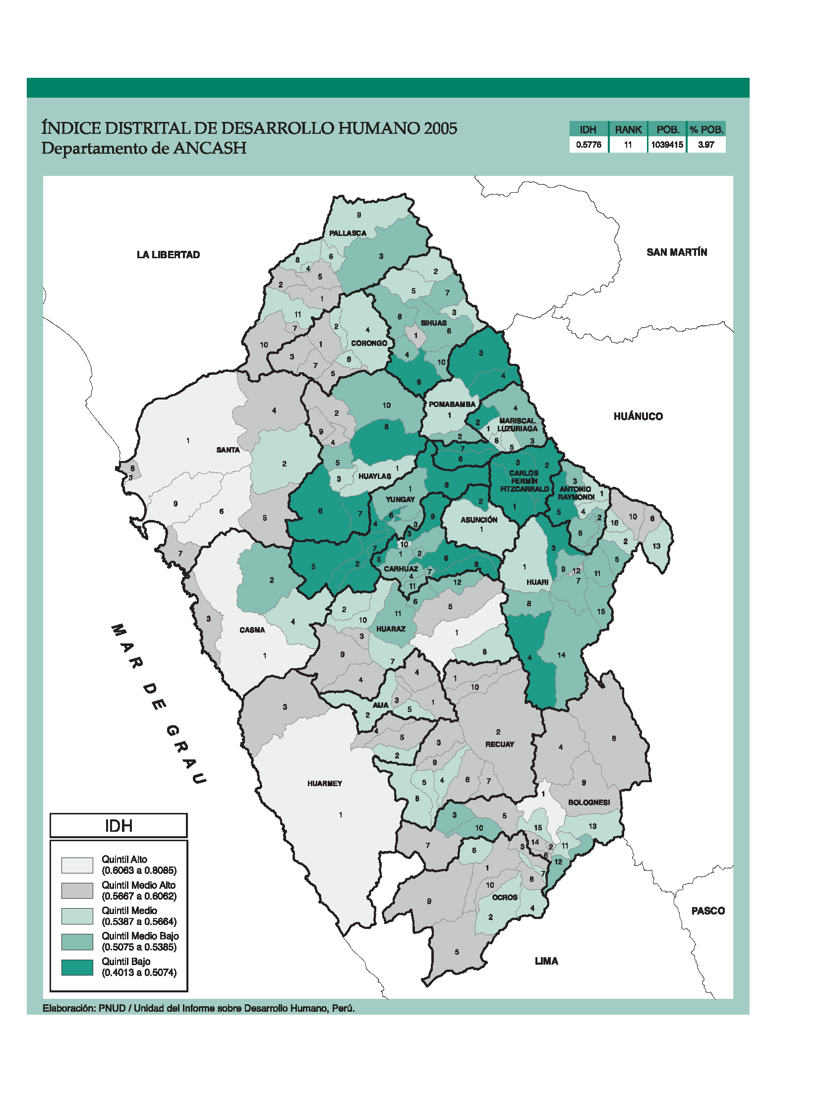 Índice de Desarrollo Humano Distrital 2005 - Departamento de Áncash.