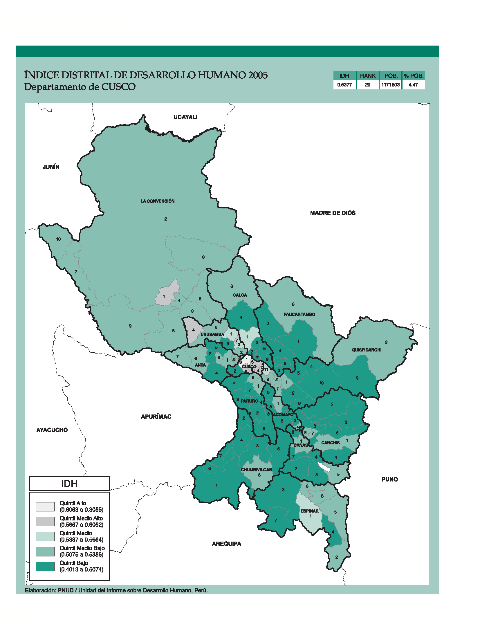 Índice de Desarrollo Humano Distrital 2005 - Departamento de Cusco.