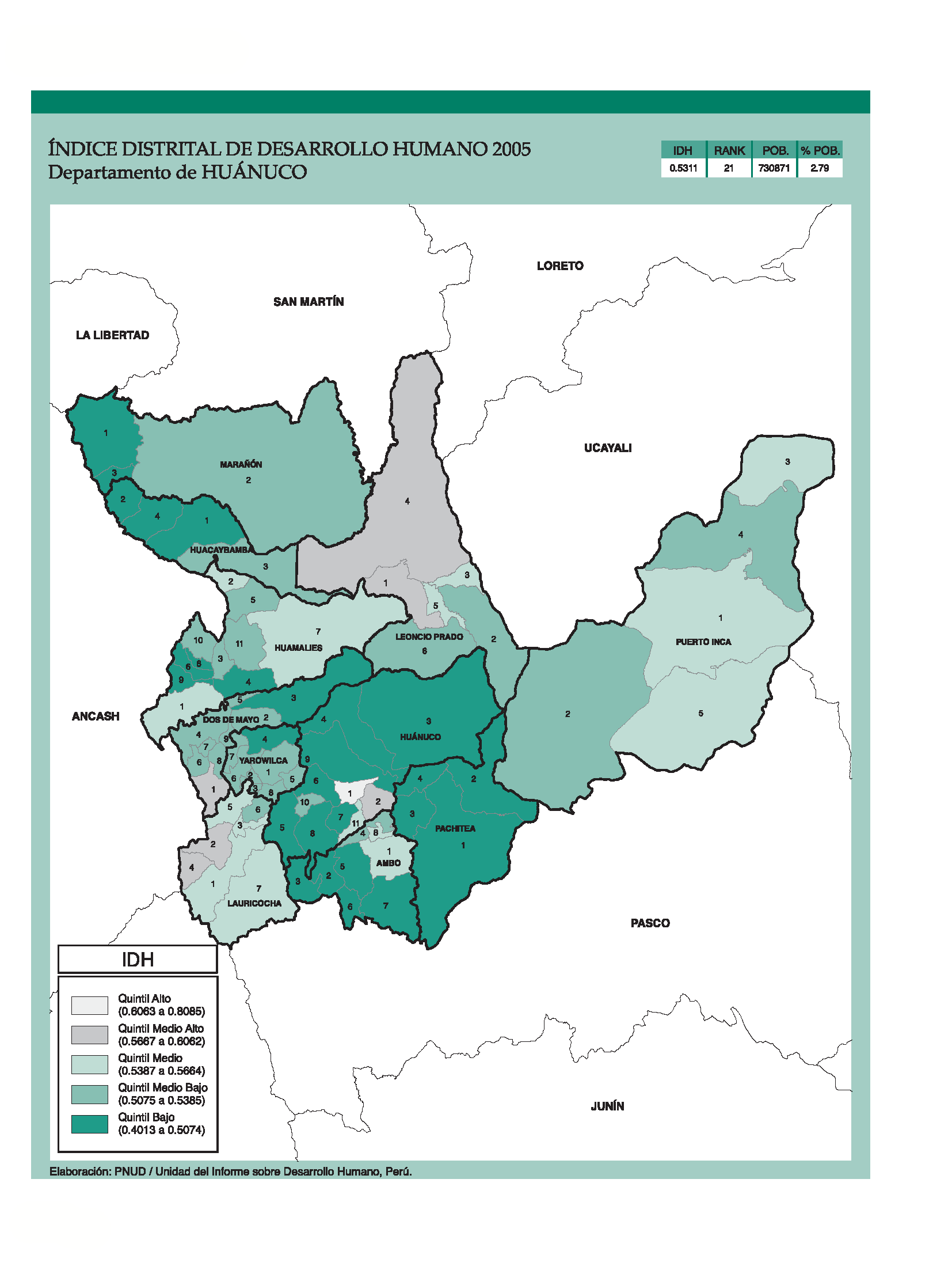 Índice de Desarrollo Humano Distrital 2005 - Departamento de Huánuco.