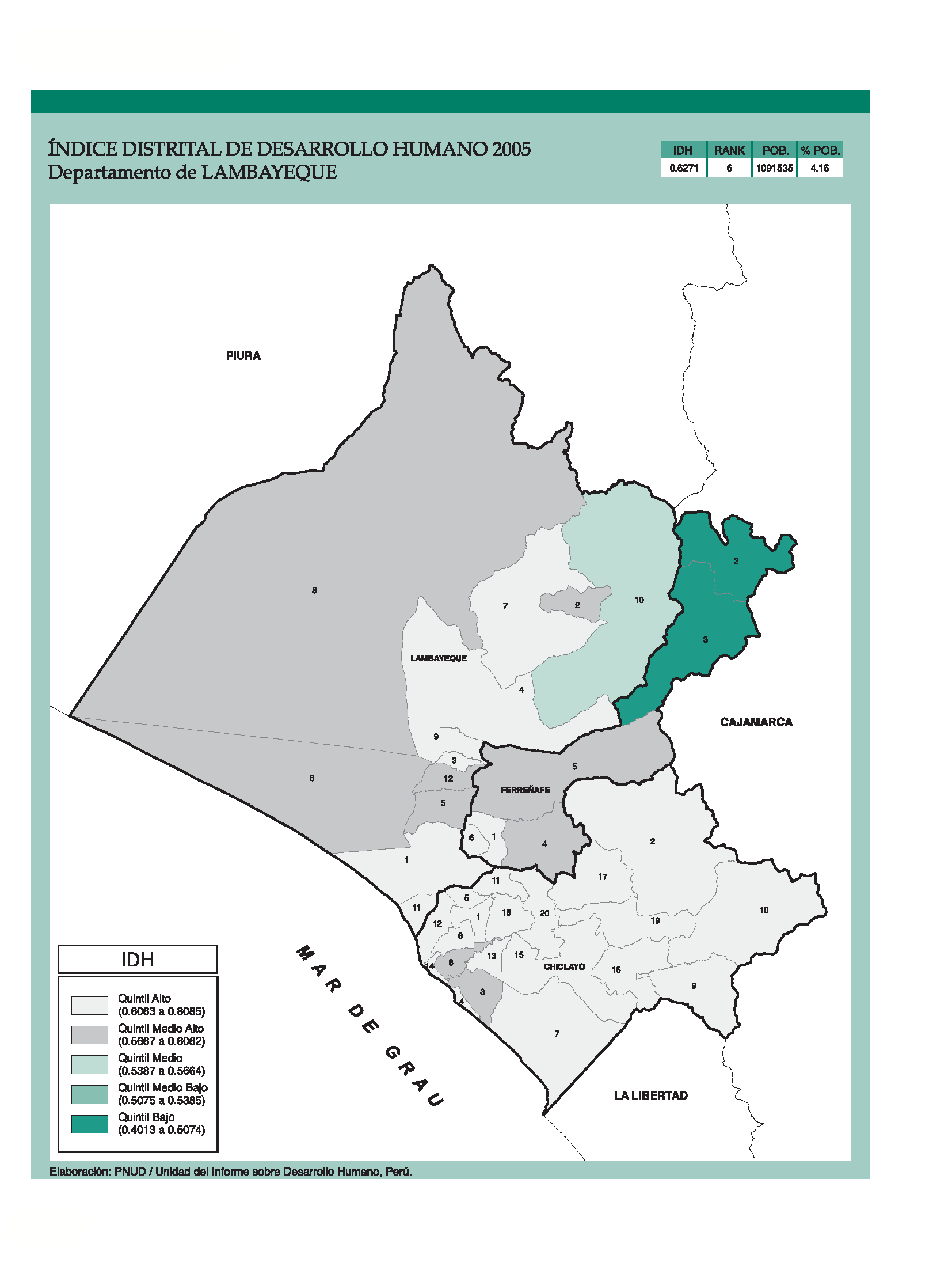 Índice de Desarrollo Humano Distrital 2005 - Departamento de Lambayeque.