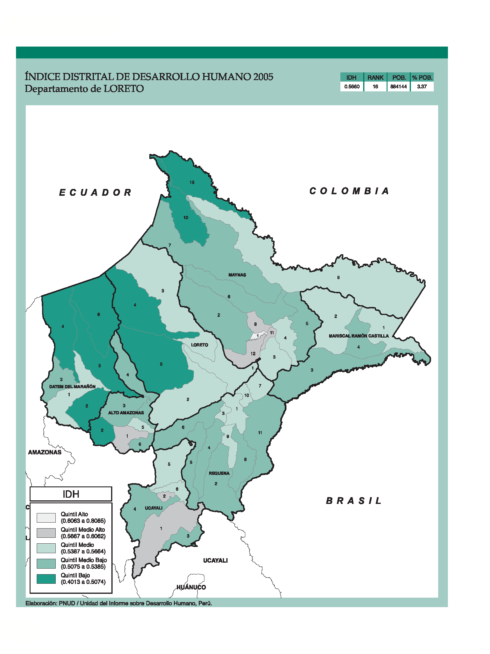 Índice de Desarrollo Humano Distrital 2005 - Departamento de Loreto.