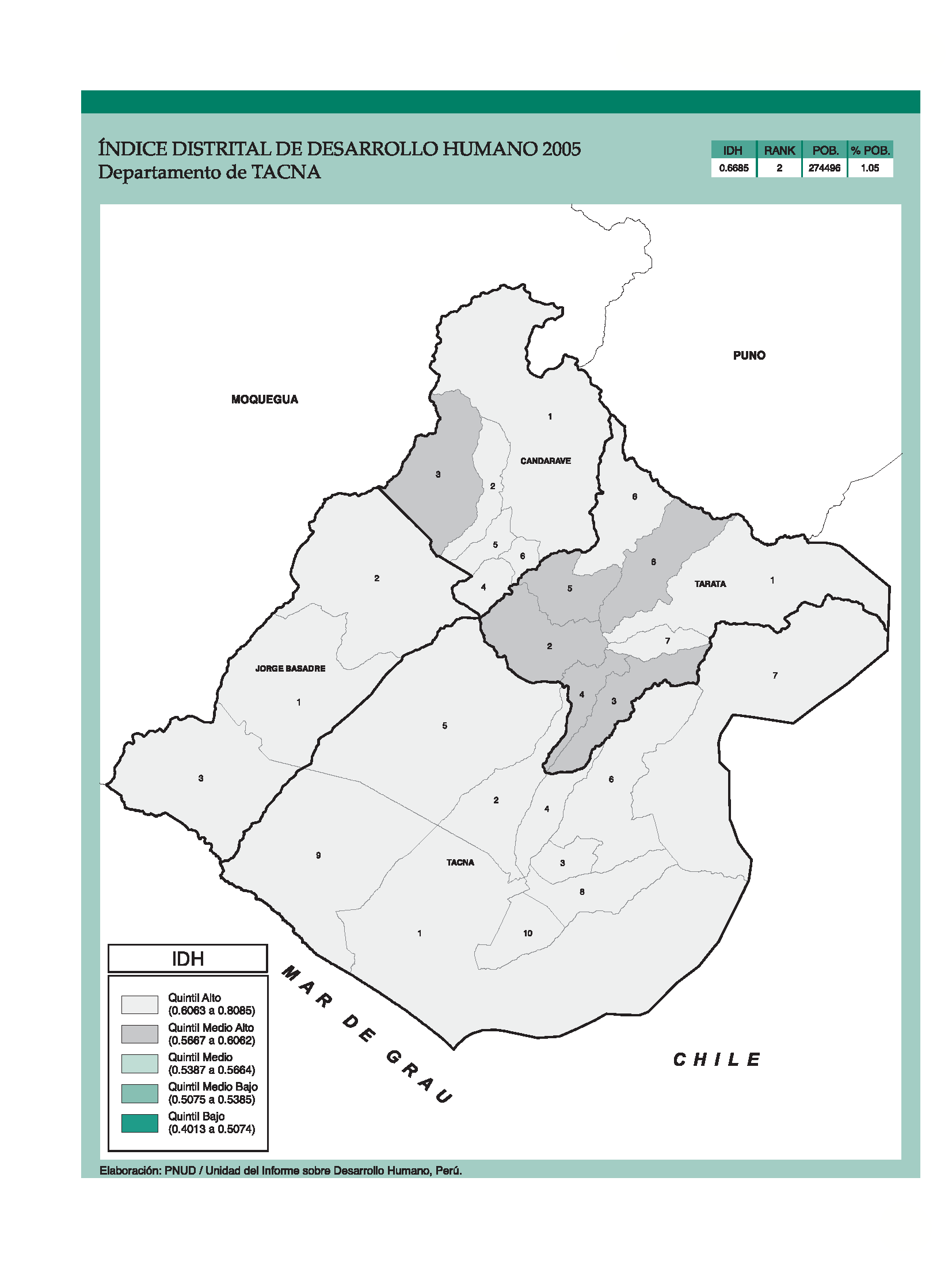 Índice de Desarrollo Humano Distrital 2005 - Departamento de Tacna.