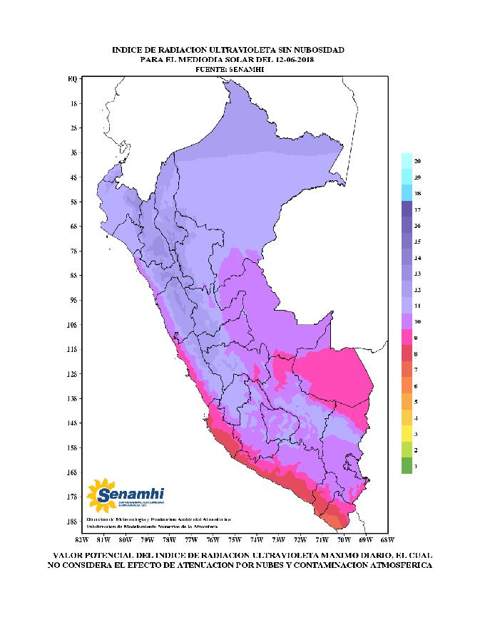 Indice de radiacion ultravioleta sin nubosidad para el mediodia solar del 12-06-2018