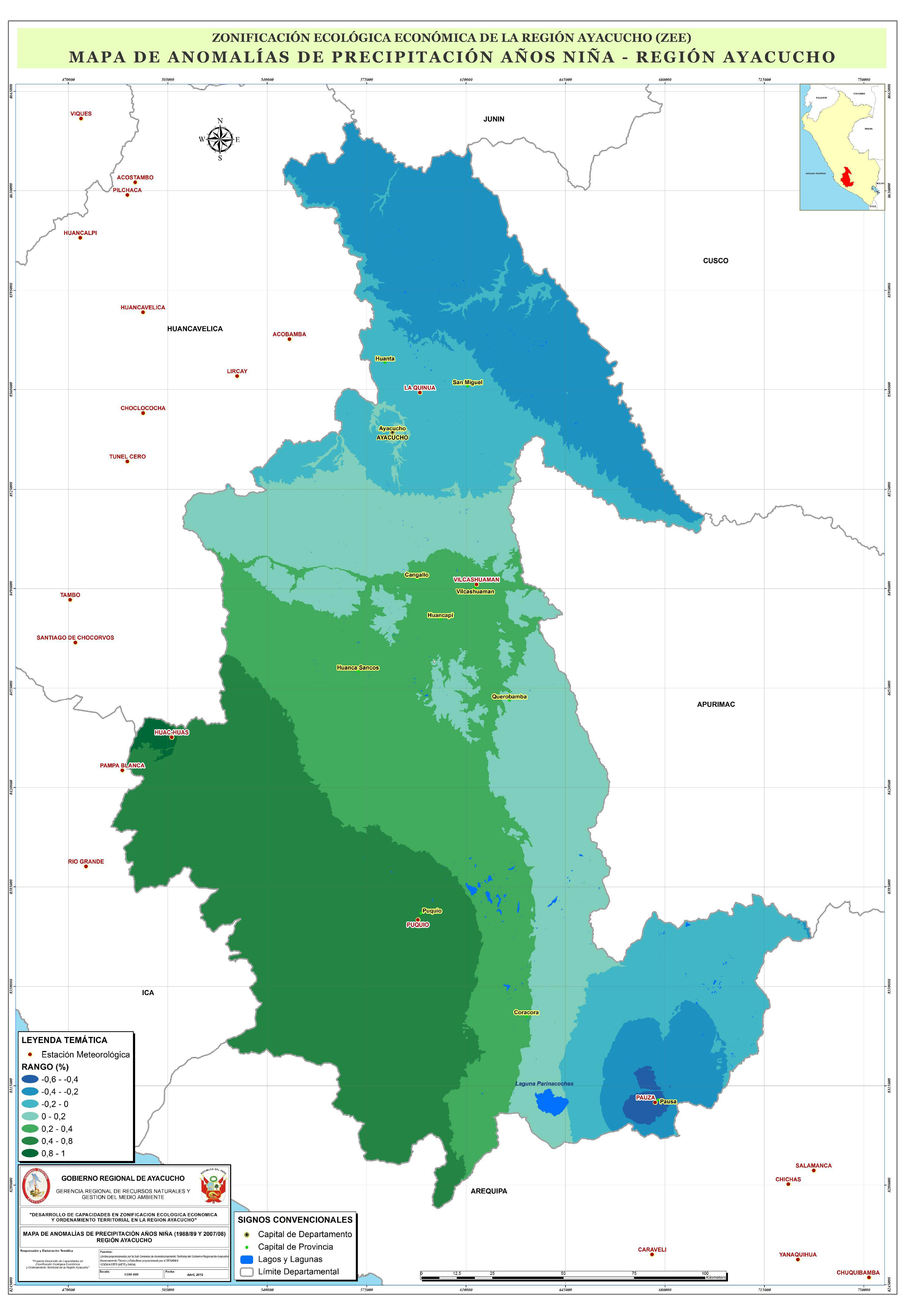 MAPA DE ANOMALIAS DE PRECIPITACION AÑOS NIÑA 1988-2008- REGION AYACUCHO