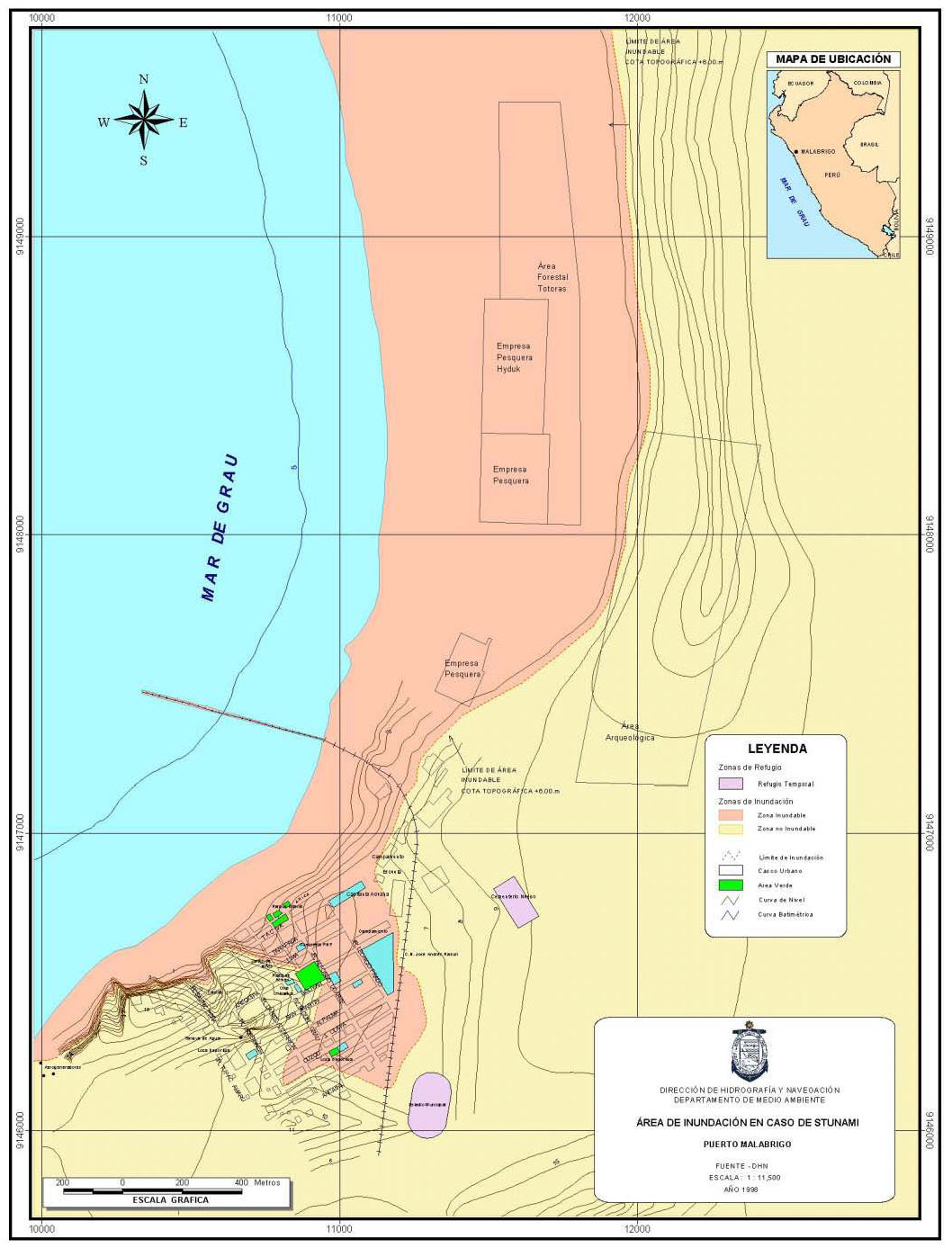Mapa de Área de Inundación en caso de tsunami en Puerto Malabrigo