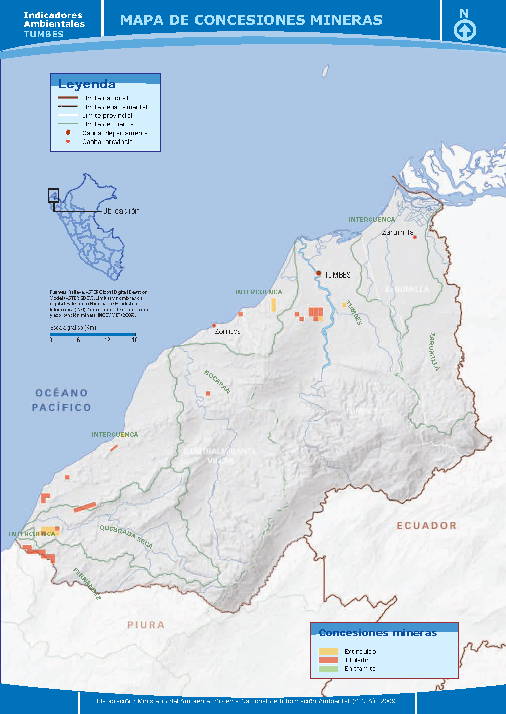 Mapa de Concesiones Mineras de Tumbes - 2009.