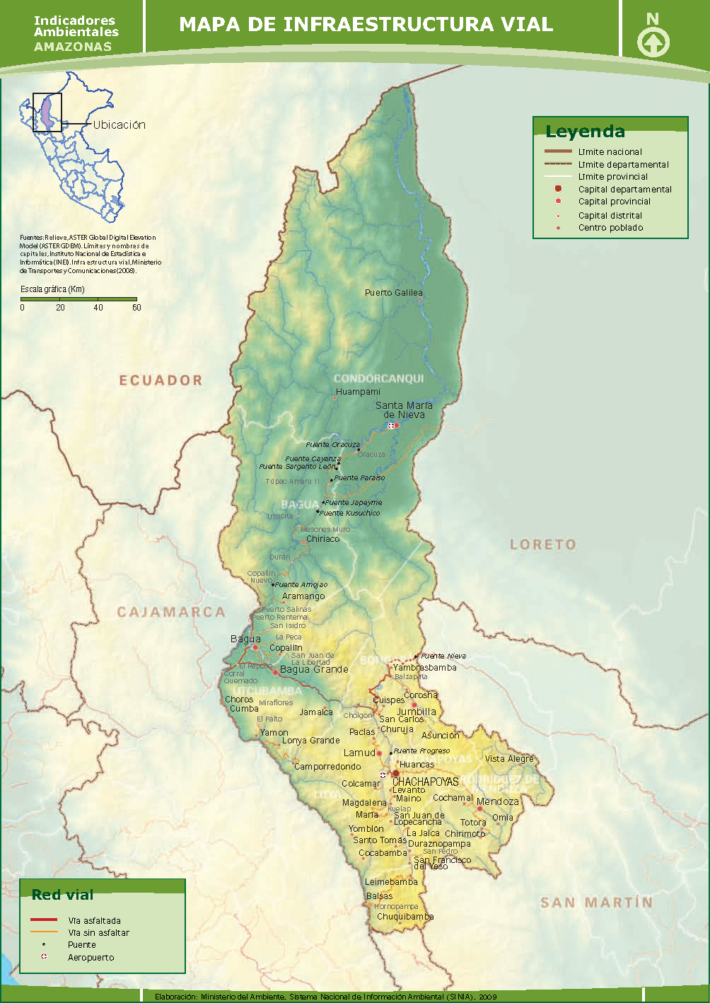 Mapa de Infraestructura Vial de Amazonas - 2009.