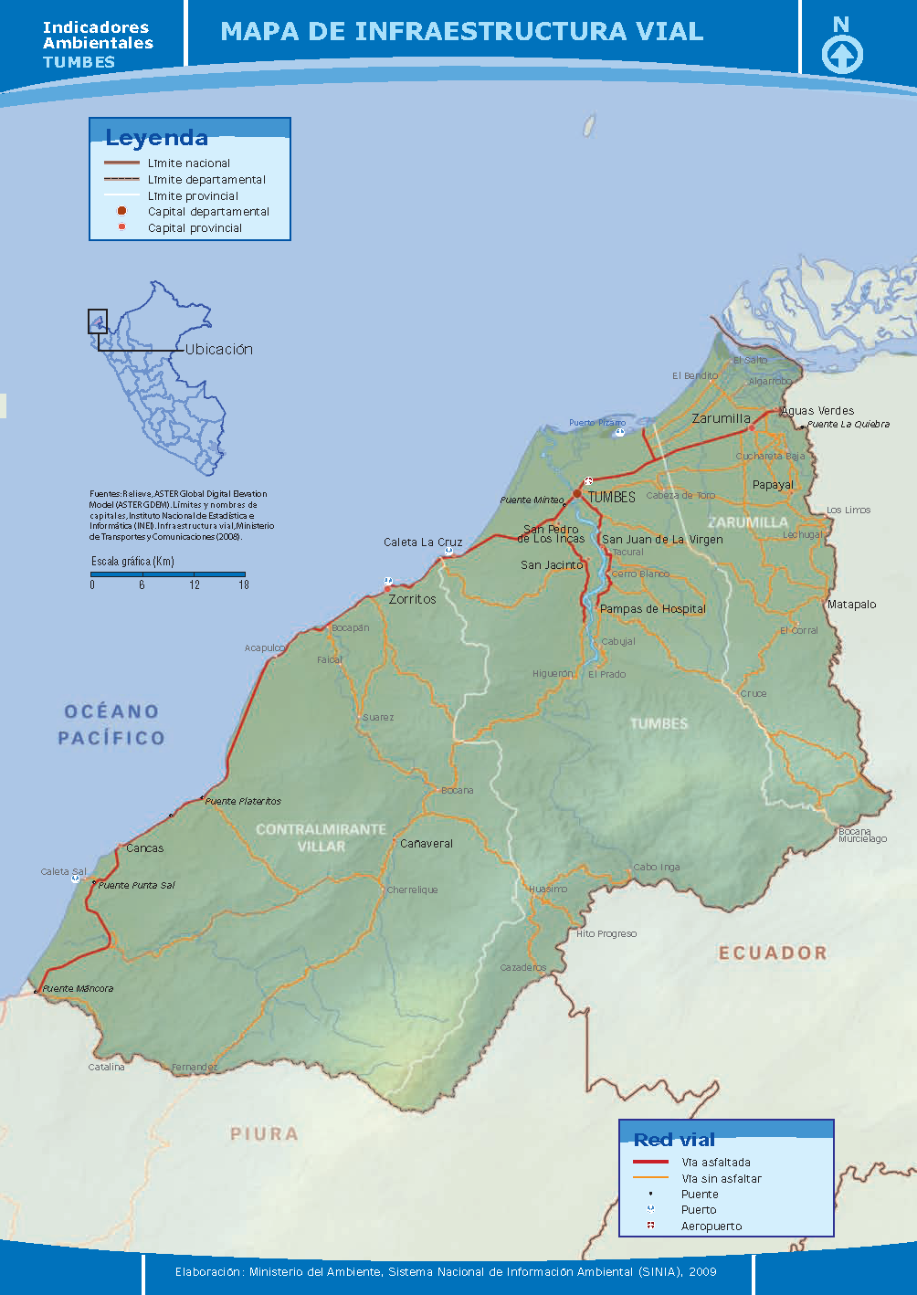 Mapa de Infraestructura Vial de Tumbes - 2009.