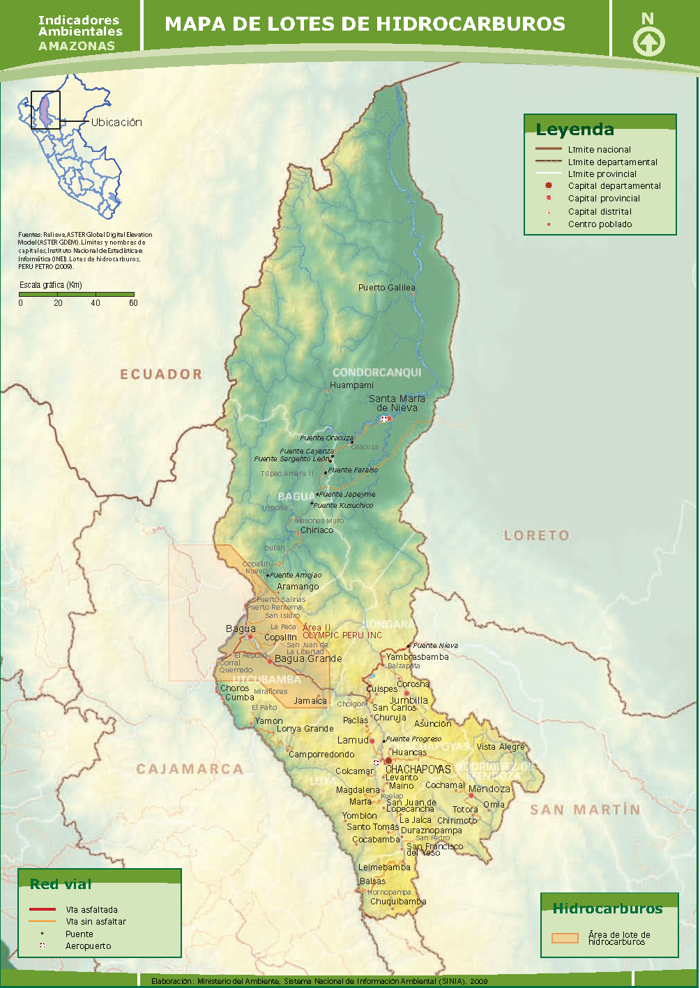 Mapa de Lotes de Hidrocarburos de Amazonas - 2009.