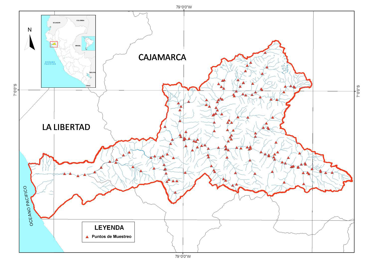 Mapa de Prospección geoquímica y muestreo de aguas de la cuenca del río Jequetepeque.