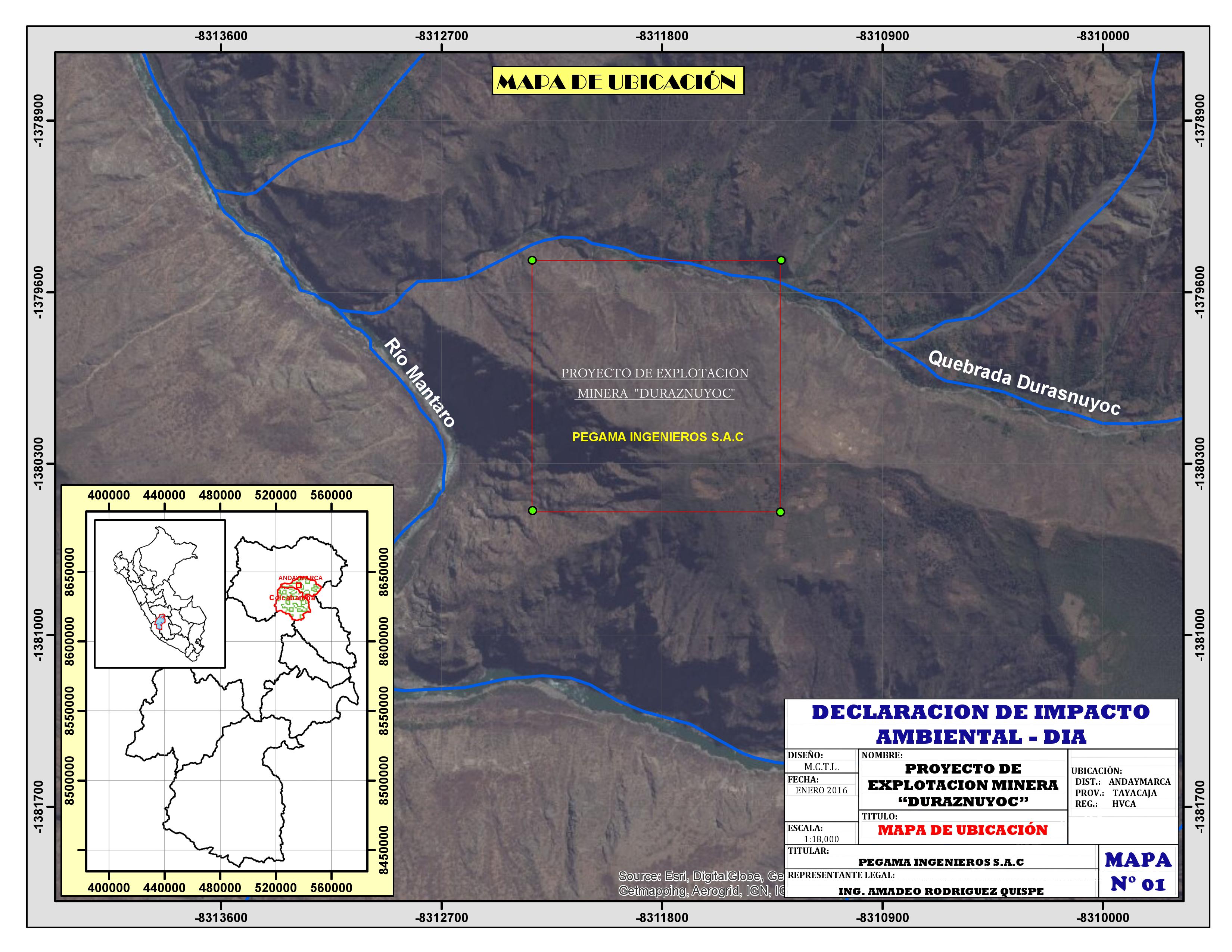 Mapa de Ubicación del Proyecto de explotación minera Duraznuyoc