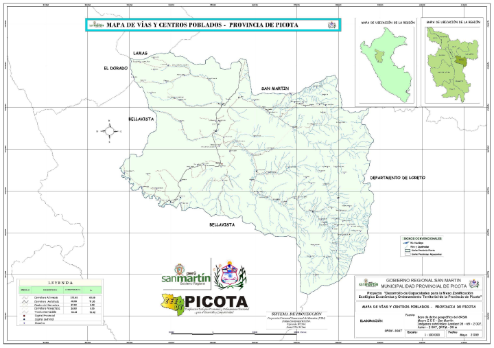MAPA DE VIAS Y CENTROS POBLADOS DE PICOTA