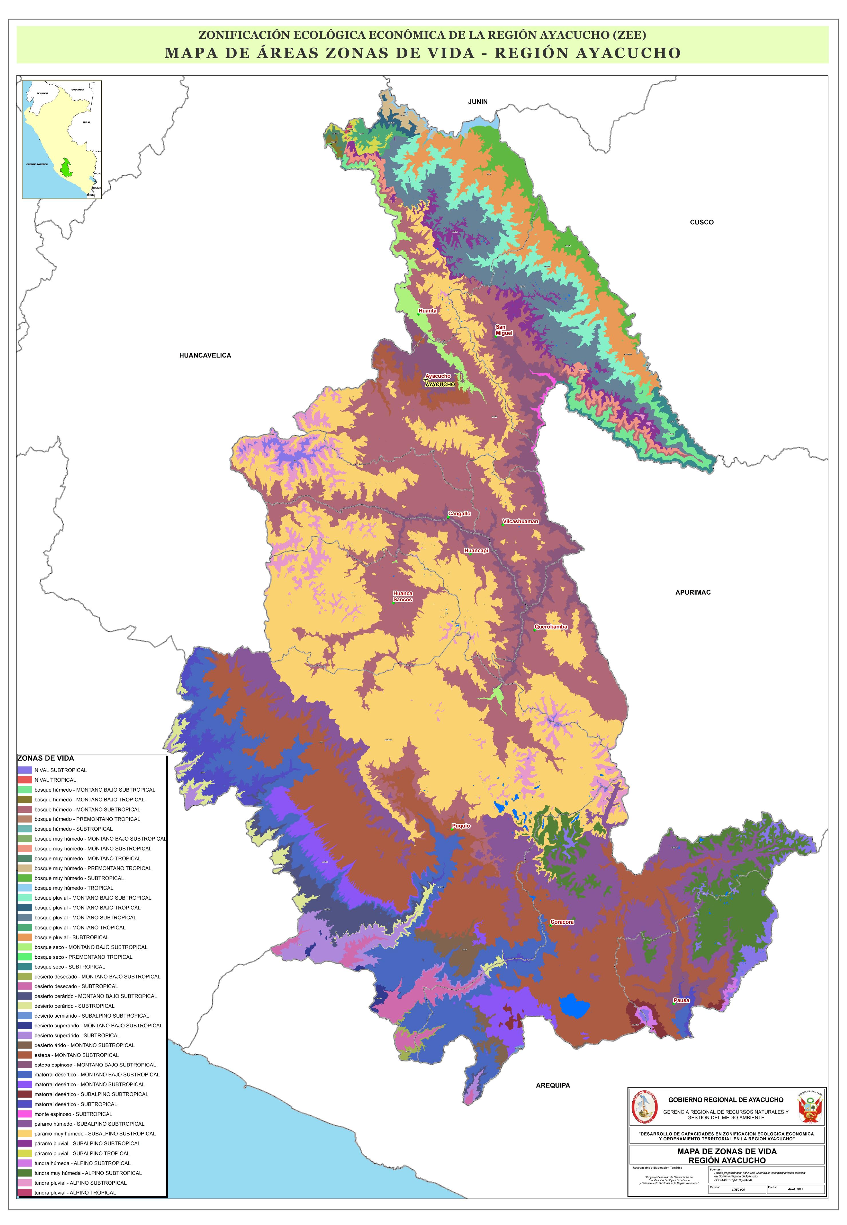 Mapa de zonas de vida de la región Ayacucho