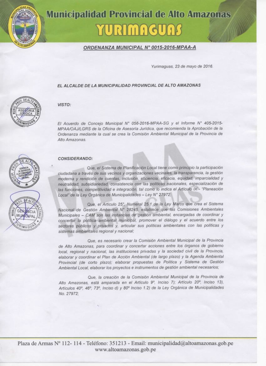 Crear la comisiòn ambiental municipal de la provincia de alto amazonas
