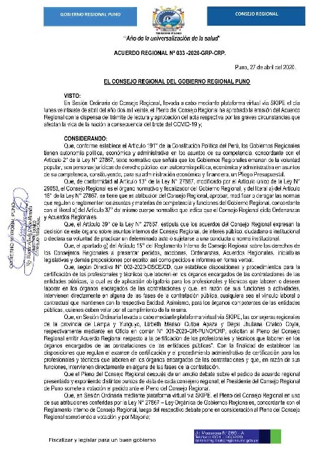 N° 033-2020-GRP-CRP.