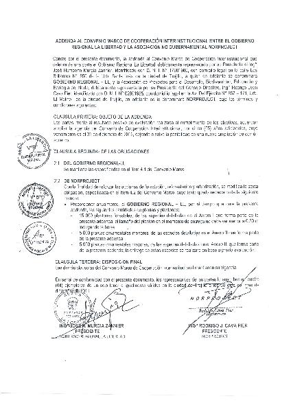 Addenda al Convenio Marco de Cooperación Interinstitucional entre el Gobierno Regional La libertad y la Asociación No Gubernamental NORPROJECT