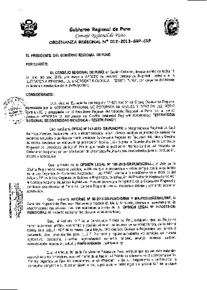 Ordenanza Regional N° 012-2013-GRP-CRP