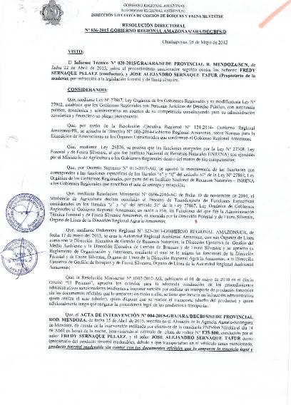 Visto el Informe Técnico N° 020-2015/GRA/ARA/SEDE PROVINCIAL R.MENDOZA/SCN, de fecha 22 de Abril de 2015, sobre el procedimiento sancionador seguido contra los señores: FREDY SERNAQUE PELAES(conductor), y JOSE ALEJANDRO SERNAQUE TAFUR (propietario de la madera); por Infracción a la legislación forestal y de fauna silvestre.