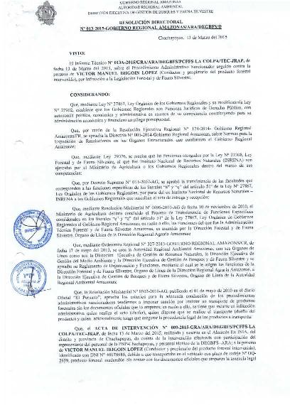 Visto el Informe Técnico N° 013A-2015/GRA/ARA/DEGBFS*PCFFS-LA COLPA/TEC-JRAP, de fecha 13 de Marzo del 2015, sobre el Procedimiento Administrativo Sancionador seguido contra la persona de VICTOR MANUEL IRIGOIN LOPEZ (Conductor y propietario del producto forestal intervenido), por Infracción a la Legislación Forestal y de Fauna Silvestre.