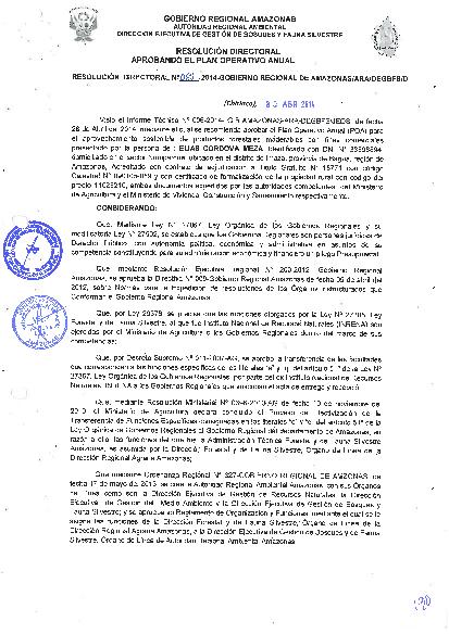 Aprobar el Plan de Manejo Forestal y Aprovechamiento Productos Forestales Maderables con fines Comerciales - Cordova Meza Elias