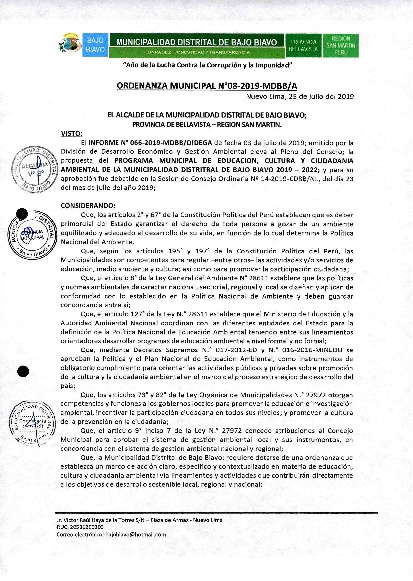 Aprobar el Programa de Educación, Cultura y Ciudadanía Ambiental de la Municipalidad Distrital Bajo Biavo 2019-2022 Inicio