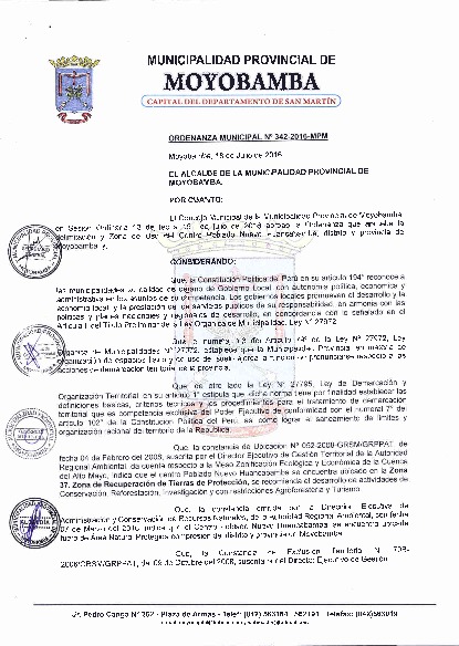 EL CONSEJO MUNICIPAL DE LA MUNICIPALIDAD PROVINCIAL DE MOYOBAMBA, EN SESIÓN ORDINARIA 13 DE FECHA 15 DE JULIO DE 2016 APROBÓ LA ORDENANZA QUE APRUEBA LA DELIMITACIÓN Y ZONAS DE USO DEL CENTRO POBLADO HUANCABAMBA, DISTRITO Y PROVINCIA DE MOYOBAMBA.